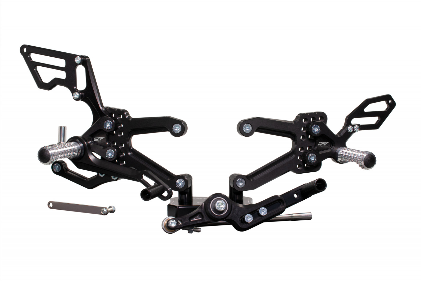 We design rear sets with four key areas in mind: functionality, durability, design and simplicity of which the functionality is the most prominent. Our rear sets provide excellent feedback for the rider allowing him to push his bike to the absolute limit. We manufacture our rear sets from EN AW โ 7075 T6 aluminium billet, which provides exceptional durability and rigidity compared to the OEM rear set. The main parts’ surface is anodized to achieve a hard black finish for additional protection against scratches and environmental influences.