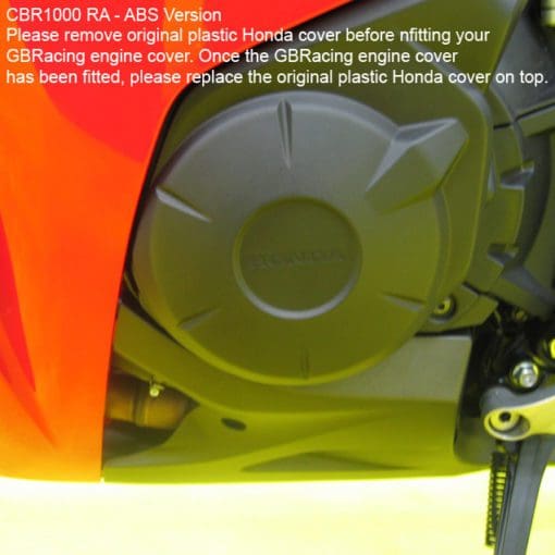 For the 2009 onwards. Please remove original plastic Honda cover before fitting your GBRacing engine cover. Once the GBRacing engine cover has been fitted, please replace the original plastic Honda cover on top.