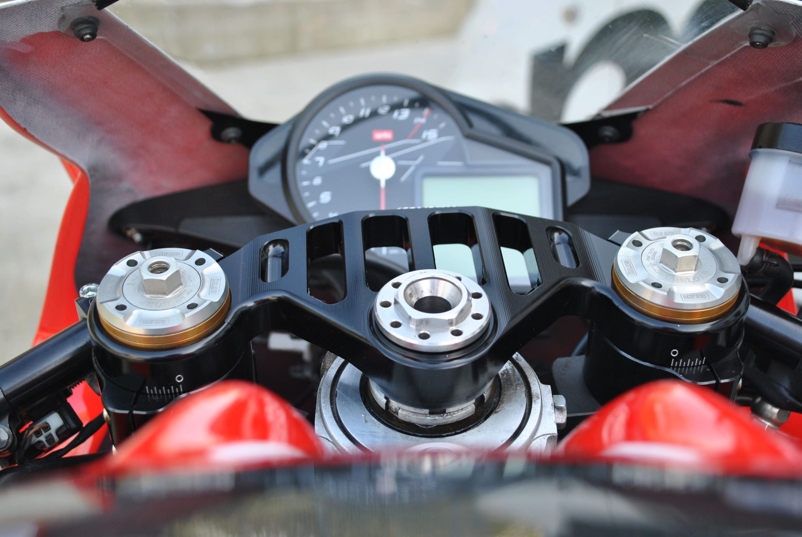100% racing inspired, made of aluminum alloy, itโs totally CNC machined. A top fork bridge which combines performance and lightness (about 100 grams lighter than the original one).